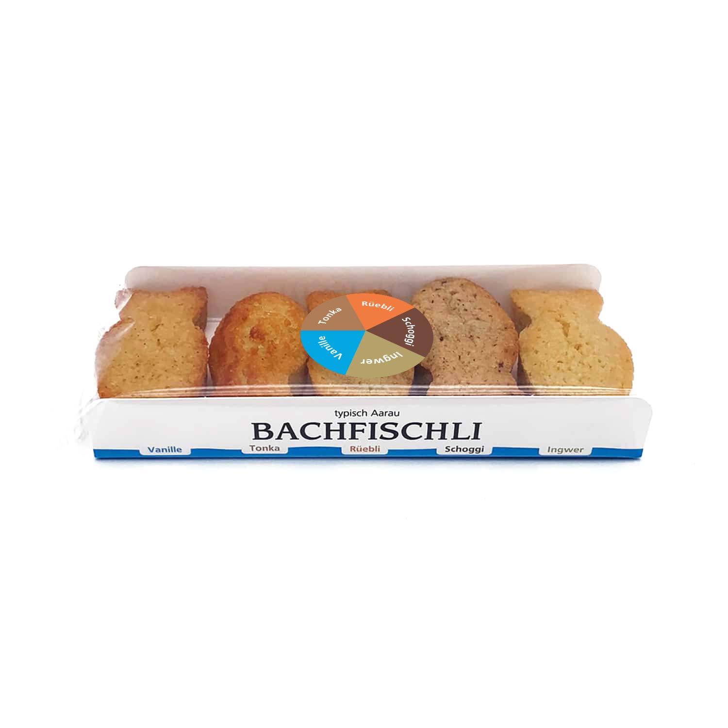 Alle Bachfischsorten in einer kleinen, mundgerechten Protion: Vanille, Tonka, Schoggi, Rüebli und Ingwer. Lass es dir schmecken!