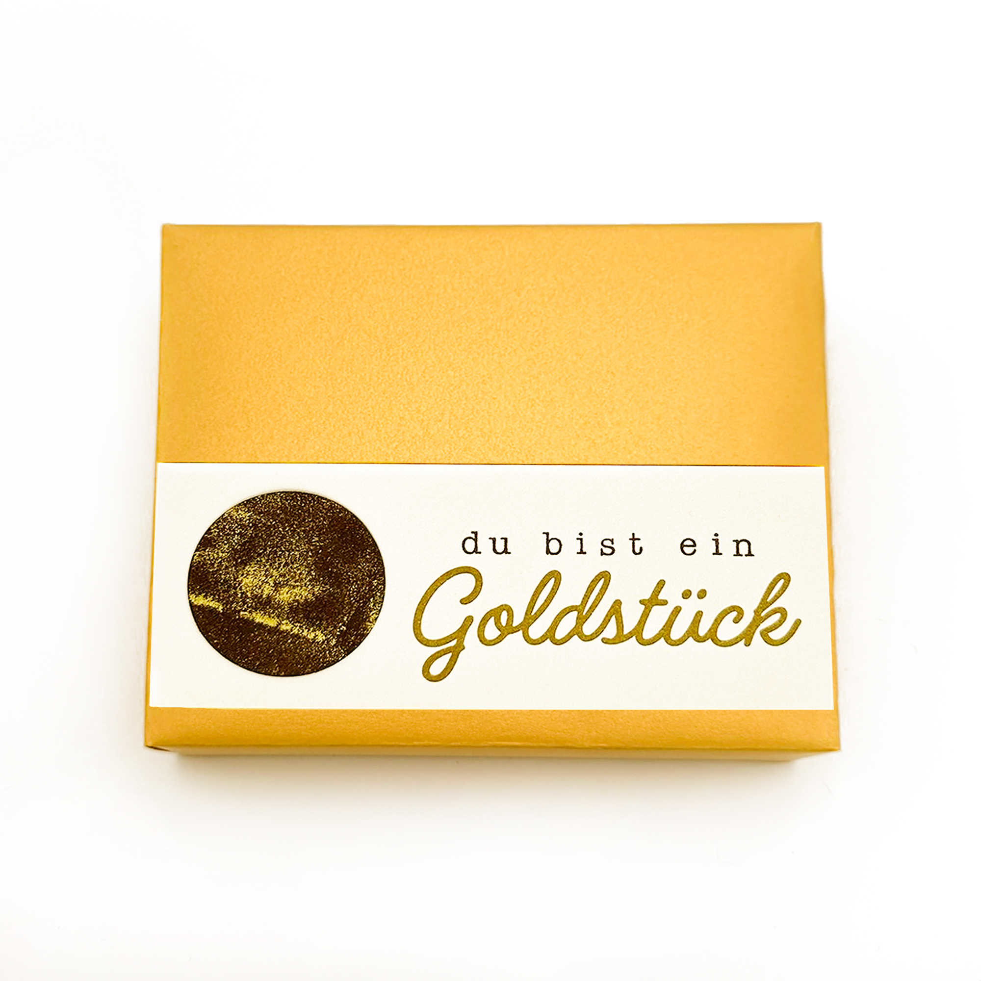 Das 9er-Goldstück-Pack in einer Goldhülle mit dem Schriftzug „Du bist ein Goldstück“ für die persönliche Note.