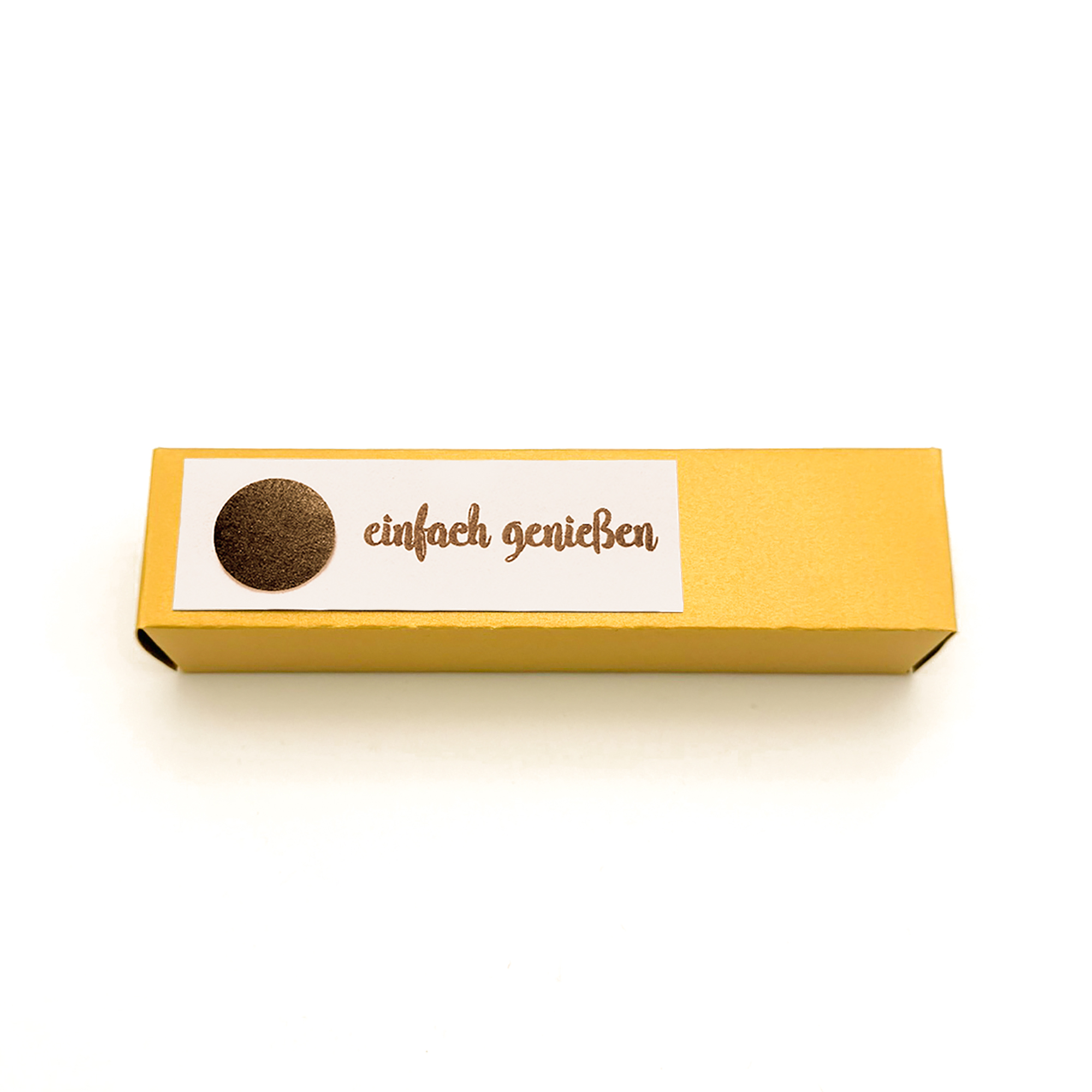 Das 4er-Goldstück-Pack in einer Goldhülle mit dem Schriftzug „einfach geniessen“. Ein süsses Geschenk für zwischendurch.
