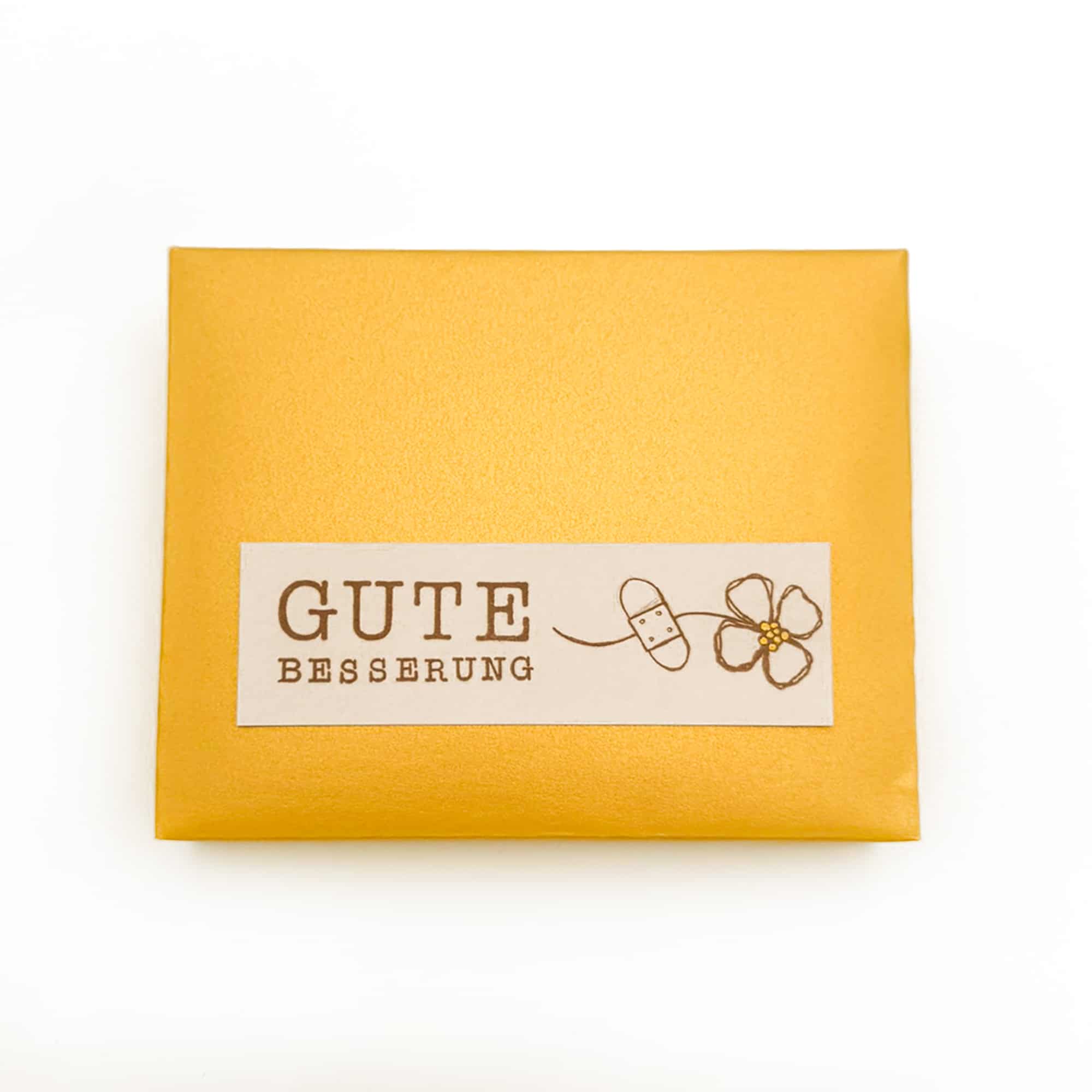 Das 9er-Goldstück-Pack in einer Goldhülle mit Schriftzug „Gute Besserung“. Für eine rasche Genesung.