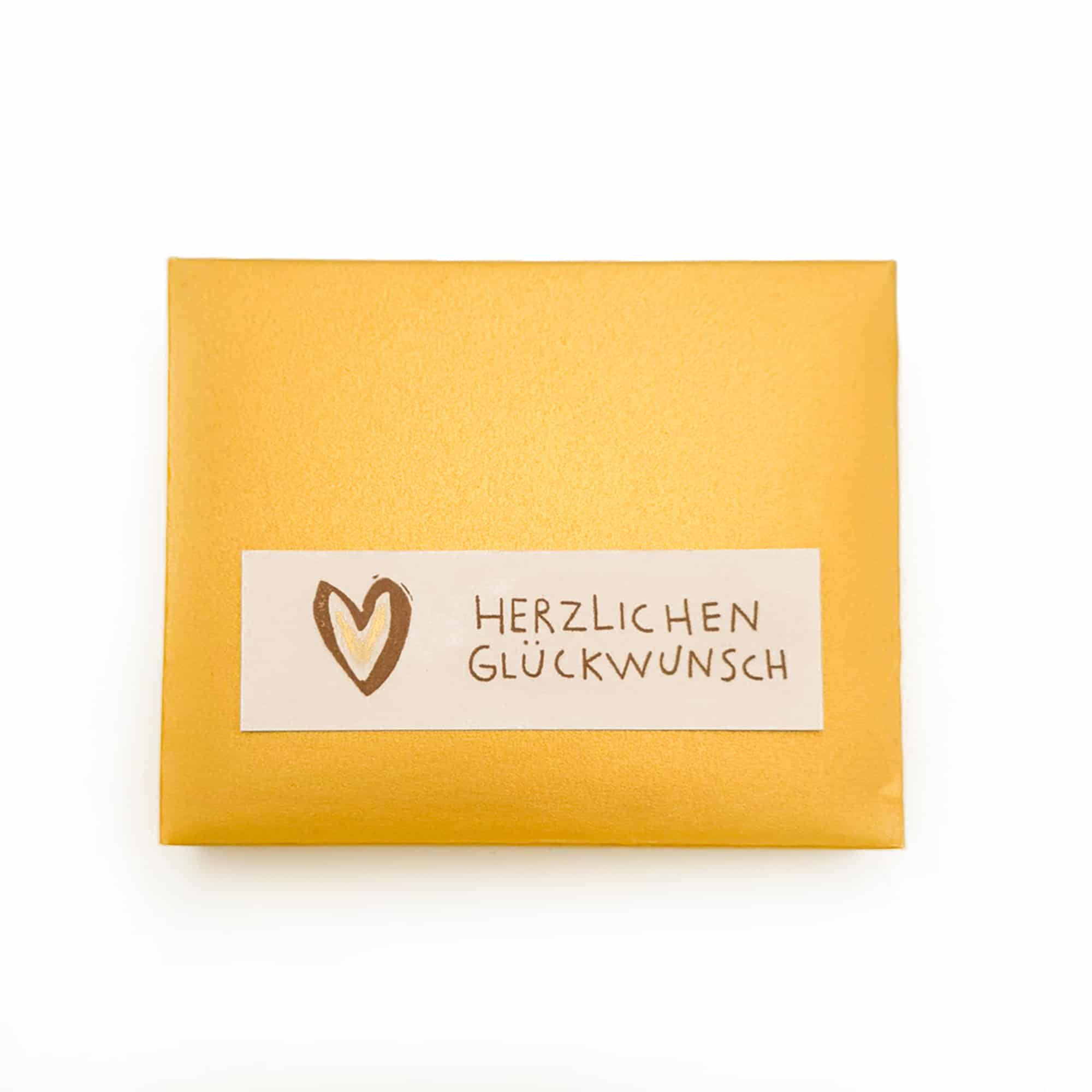 Das 9er-Goldstück-Pack in einer Goldhülle mit Schriftzug „Herzlichen Glückwunsch“. Ein süsses Geschenk zu jedem freudigen Anlass. Mehr zum Goldstück unter www.goldstück.ch
