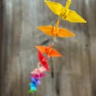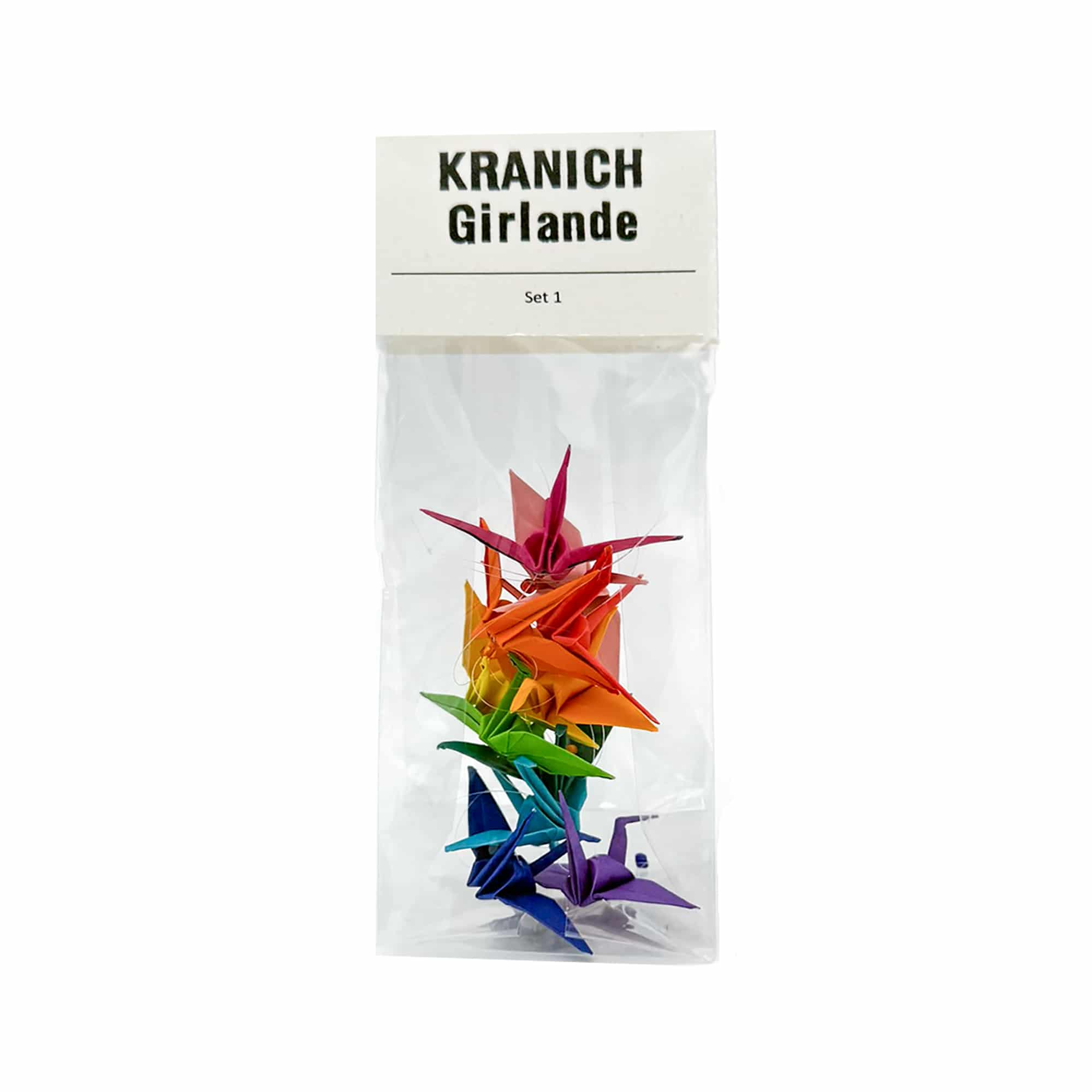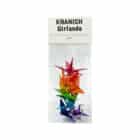 Eine Girlande aus kleinen handgefalteten Kranichen