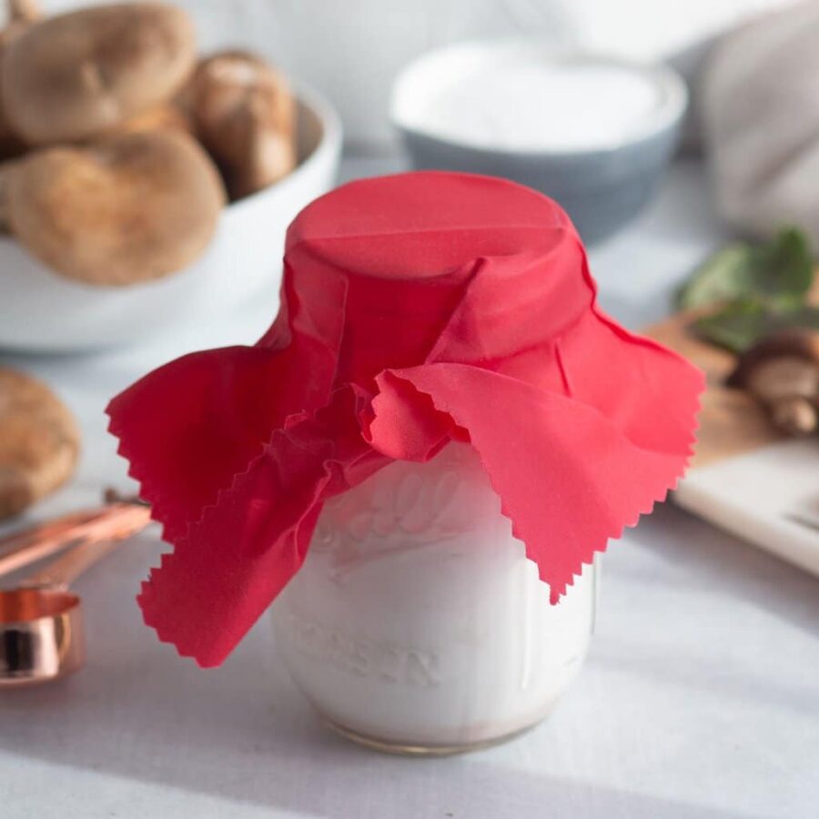 Ein Set aus 3 unterschiedlich grossen Bienenwachstüchern – zweimal uni, einmal mit Tropfenmuster. www.patabee.ch