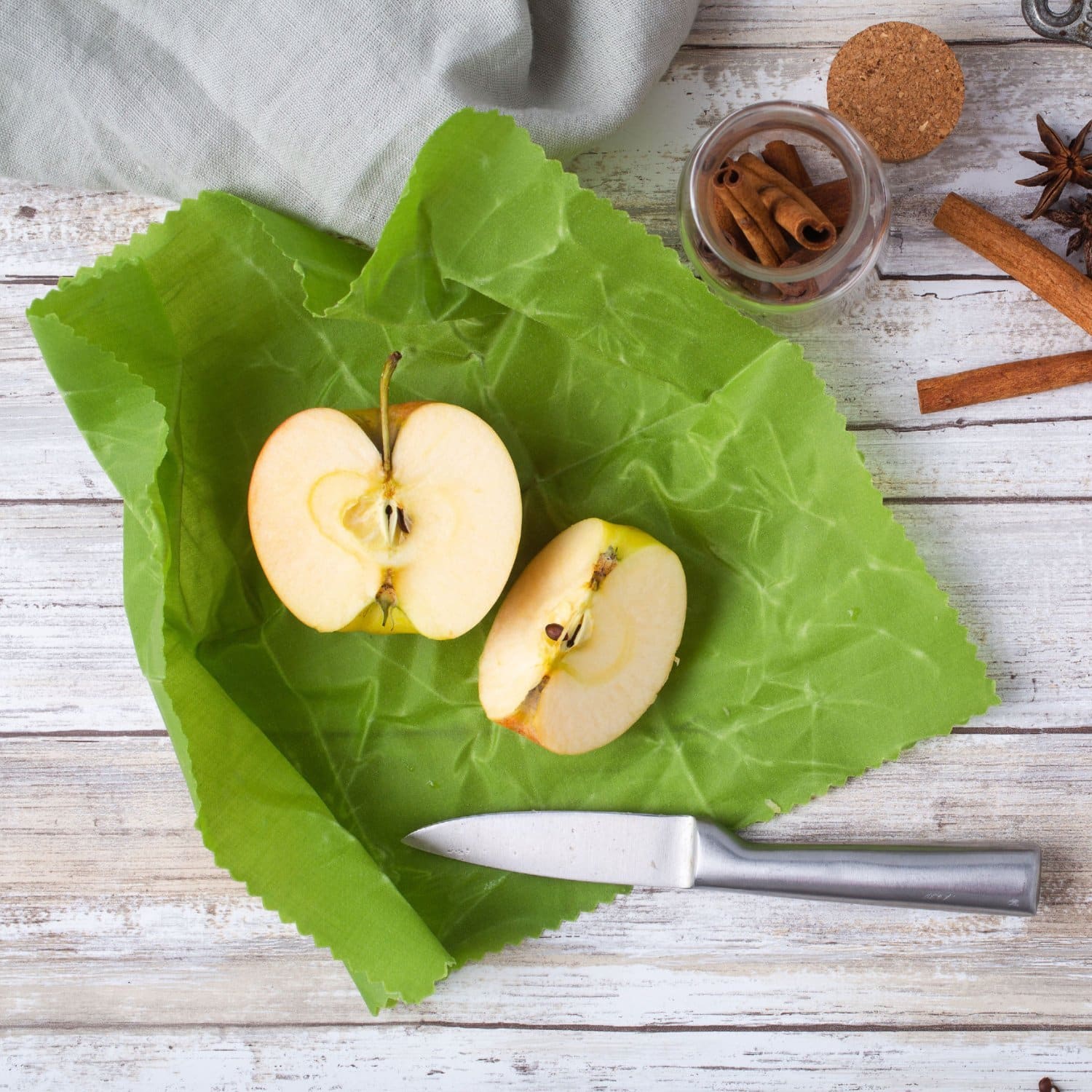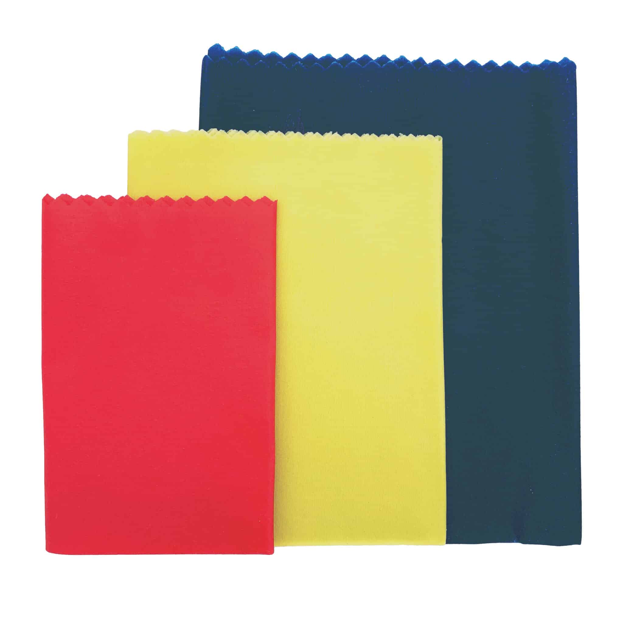 Drei Bienenwachstücher in unterschiedlichen Grössen und Farben für Nachhaltigkeit und bunte Abwechslung in der Küche! www.patabee.ch