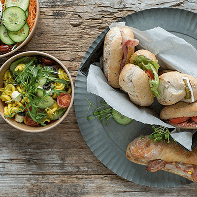 Display mit 15 Bienenwachstücher-Sets. Jedes Set beinhaltet drei Tücher in unterschiedlichen Grössen.